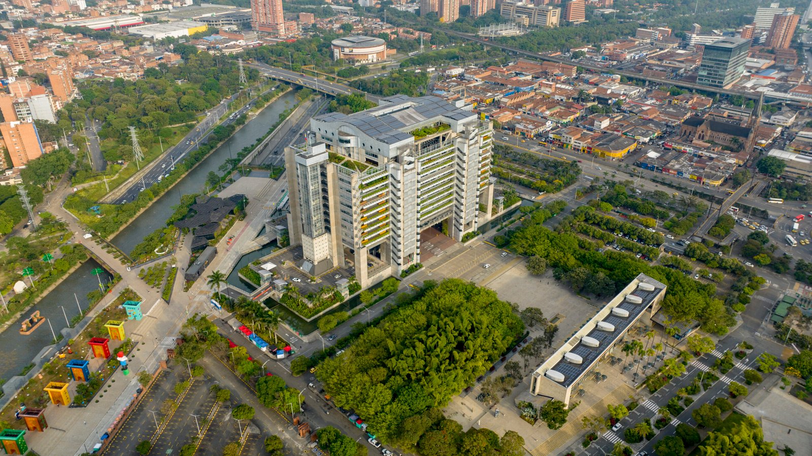 El Edificio Inteligente de EPM es uno de los íconos arquitectónicos más representativos de la Medellín moderna. Inaugurado en 1997, esta sede corporativa de Empresas Públicas de Medellín (EPM) fue concebida como un símbolo de eficiencia, sostenibilidad y desarrollo tecnológico. Su diseño innovador, a cargo del arquitecto Víctor Consuegra, integra arquitectura bioclimática, automatización de sistemas y un enfoque responsable con el medioambiente, lo que lo posicionó desde sus inicios como uno de los edificios más avanzados de América Latina.