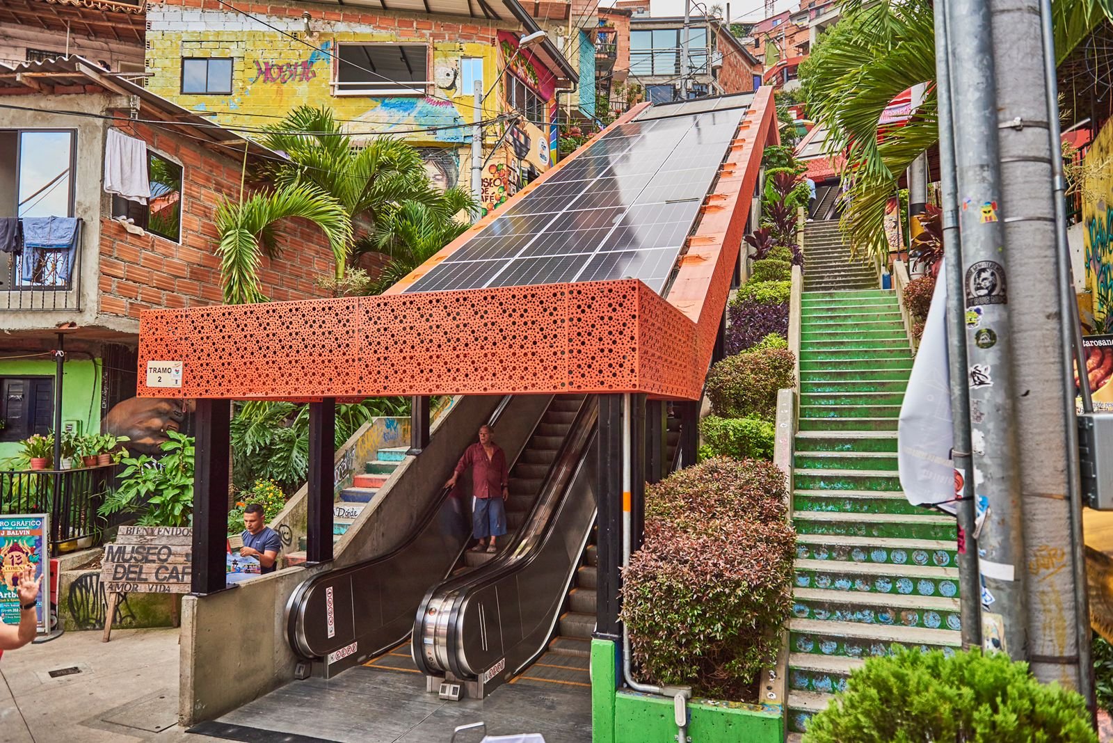 Inauguradas en 2011, las escaleras conectan a los habitantes de las zonas más altas con el resto del barrio, facilitando la vida diaria en un terreno de pendientes empinadas. Pero más allá de lo funcional, lo que hace especial este lugar es su carga simbólica: están en una zona que vivió décadas de conflicto armado, y que hoy se ha convertido en un espacio de expresión artística, cultura urbana y memoria viva.