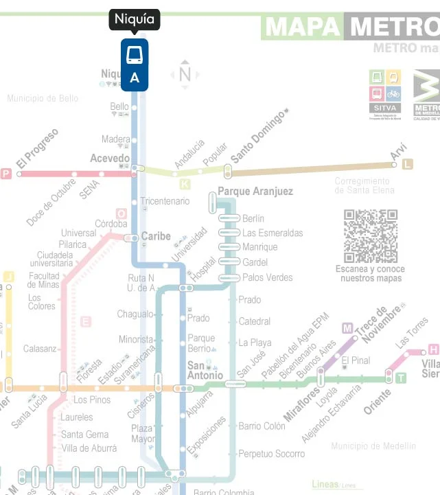 La Estación Niquía es la terminal norte de la Línea A del Metro de Medellín, ubicada en el municipio de Bello, Antioquia. Es un punto clave para viajeros que se movilizan hacia el norte del Valle de Aburrá, y conecta fácilmente con varias rutas integradas que llegan hasta los municipios vecinos.