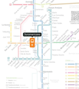 Ubicada en la comuna 11 (Laureles - Estadio), su nombre proviene de su cercanía a la sede principal de la aseguradora Suramericana de Seguros, un referente empresarial de la ciudad.