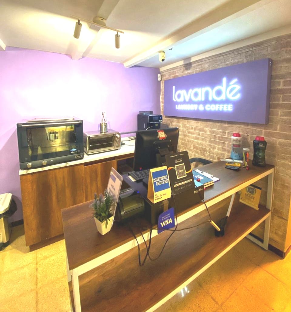 Lavandería y café. Servicio de entrega. Lavandería por kilo