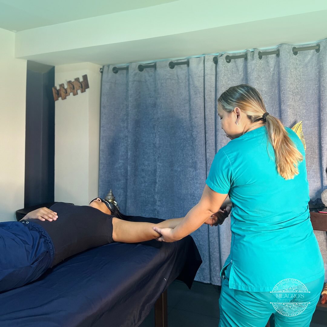Somos un Centro Profesional de Masajes Terapéuticos especializado en diferente técnicas globales para liberar tensiones musculares que provocan síndromes o patologías que causan dolor y limitacion en el movimiento , nuestro objetivo principal es proporcionar salud y bienestar .También tenemos tratamientos faciales integrados a nuestros servicios ¡Reserva ONLINE !" ENG: "We are a Professional Center for Therapeutic Massages, specialized in different global techniques to release muscle tension that causes syndromes or pathologies leading to pain and limited movement. Our main goal is to provide health and well-being. We also offer facial treatments integrated into our services.