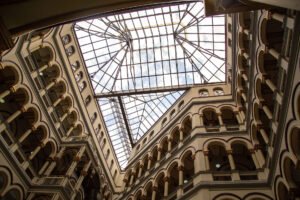 Antiguamente sede del poder judicial, hoy este palacio transformado en centro comercial es un cruce de caminos entre lo histórico y lo cotidiano, donde la memoria se mezcla con la vida moderna. Pasear por sus corredores es caminar sobre los ecos de jueces, poetas y ciudadanos del ayer, envueltos ahora en el murmullo de los visitantes y en el brillo de vitrinas llenas de color.