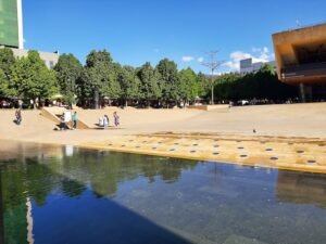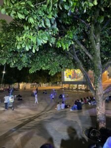 En el centro del parque se encuentra una gran plazoleta al aire libre, que se transforma por las noches en un cine bajo las estrellas, proyectando películas para el público en general de forma gratuita. Esta actividad ha convertido el parque en un símbolo de cultura abierta y gratuita para todos, fortaleciendo el vínculo entre conocimiento y disfrute colectivo.