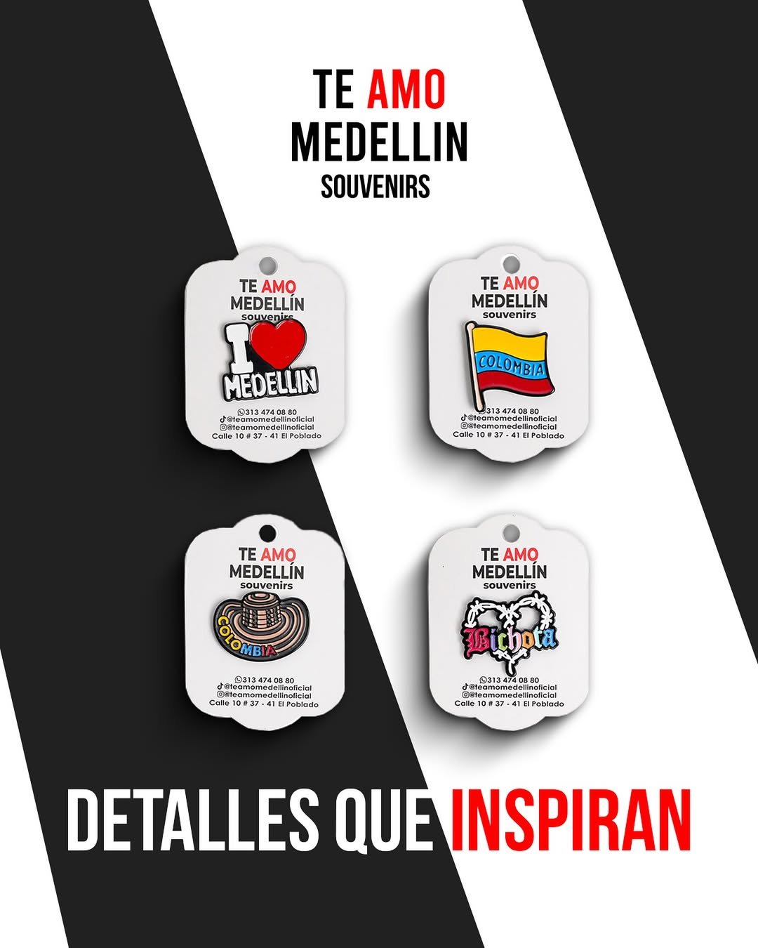 En Te Amo Medellín Souvenirs encuentras los recuerdos más auténticos de Medellín en pleno corazón del Poblado. Somos una tienda colorida, moderna y 100% paisa, especializada en souvenirs típicos, artesanías colombianas y regalos con alma. Ofrecemos productos únicos como camisetas, llaveros, tazas, mochilas Wayuu, dulces tradicionales, café local y mucho más. ¡Perfecto para turistas, viajeros y amantes de la cultura antioqueña! Visítanos en nuestra nueva sede del barrio Manila o en nuestra sede de la calle 10 y llévate un pedacito de Medellín hecho recuerdo.