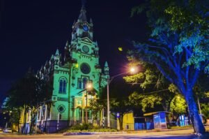 El templo destaca por su imponente arquitectura de estilo neogótico, caracterizado por sus altas torres, arcos apuntados y vitrales de colores que llenan de luz y espiritualidad su interior. Su fachada, elaborada en piedra, transmite una sensación de fuerza y solemnidad, mientras que sus detalles ornamentales evocan la grandeza de las antiguas catedrales europeas.